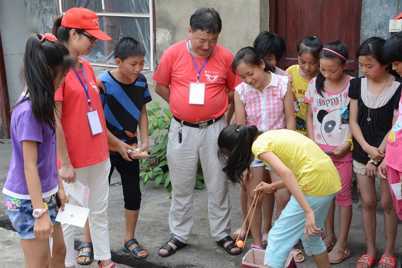 7月14日,夏令营呵护活动行进第二日,各营志愿者负责人和营员被试成员有了正式活动的交互基础,早8时30分,各营分组带队并清点全体营员,志愿者活动负责小组就同伴竞技赛规则和积分制度进行分别讲解,分设9个主要游戏点,发放积分卡,9时团体组合竞技游戏正式开始。