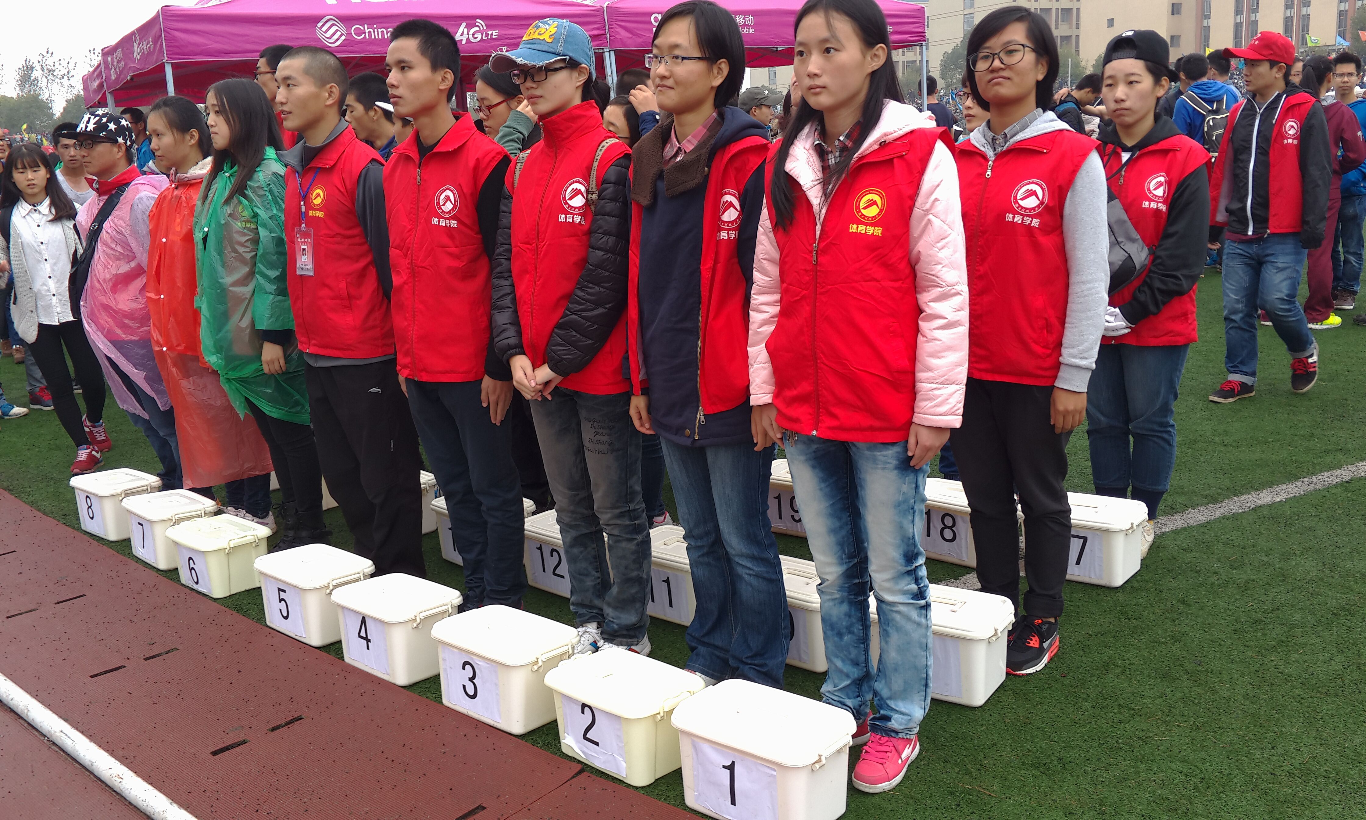 除了运动员们学院老师和学生会的部门也做了很多工作。体育部赛前组织运动员去训练,并给予指导,传授经验,赛场上敲响大鼓,组织观众为学院的运动员加油;女生部为运动会排练了许久的啦啦操,在寒风中穿着美丽冻人的衣服翩翩起舞,为运动健儿们加油鼓劲,为学院扬威;纪检部努力维持会场秩序,宣传部负责广播稿的收集以及新闻工作……每个人都用自己的方式为校运会加油。