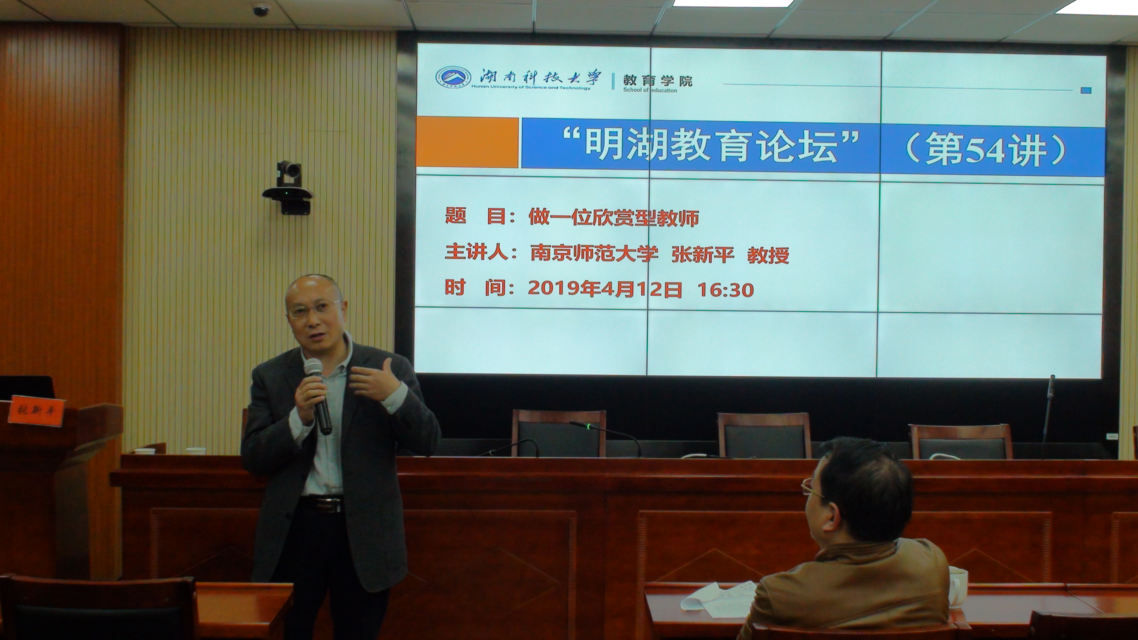 2019412日下午,南京师范大学教育科学学院博士生导师张新平教授做客“明湖教育论坛”,为我院师生带来题为“做一位欣赏型教师”的学术报告。报告会由教育学院院长李海萍主持。