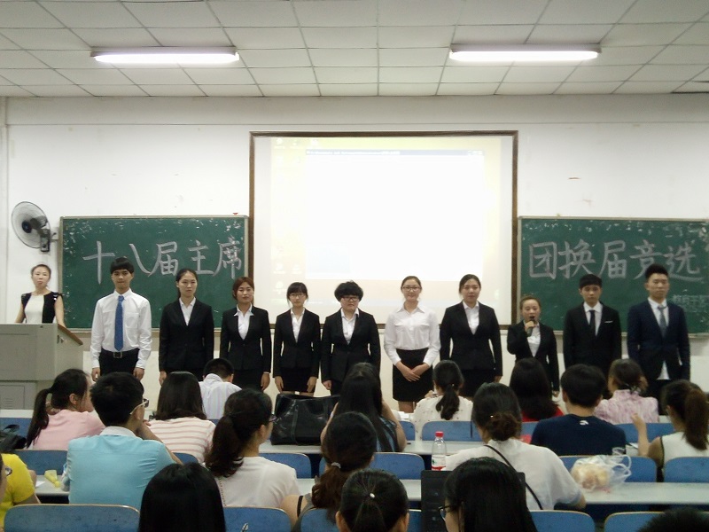 2016年6月7日19点30分,湖南388vip太阳集团第十八届主席团换届竞选在第八教学楼2-3教室如期进行。出席现场的嘉宾有教育学院党委副书记王伟清教授,教育学院学工办主任李涛,学工办老师练素华、胡银华、尹琼芳、腾茜茜,及教育学院第十七届主席团成员。