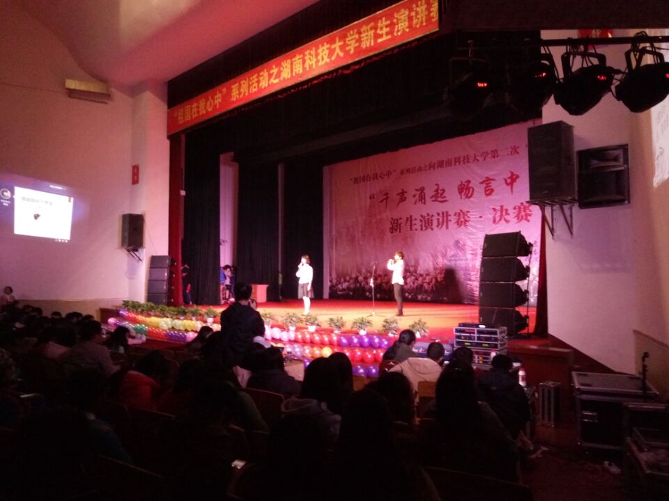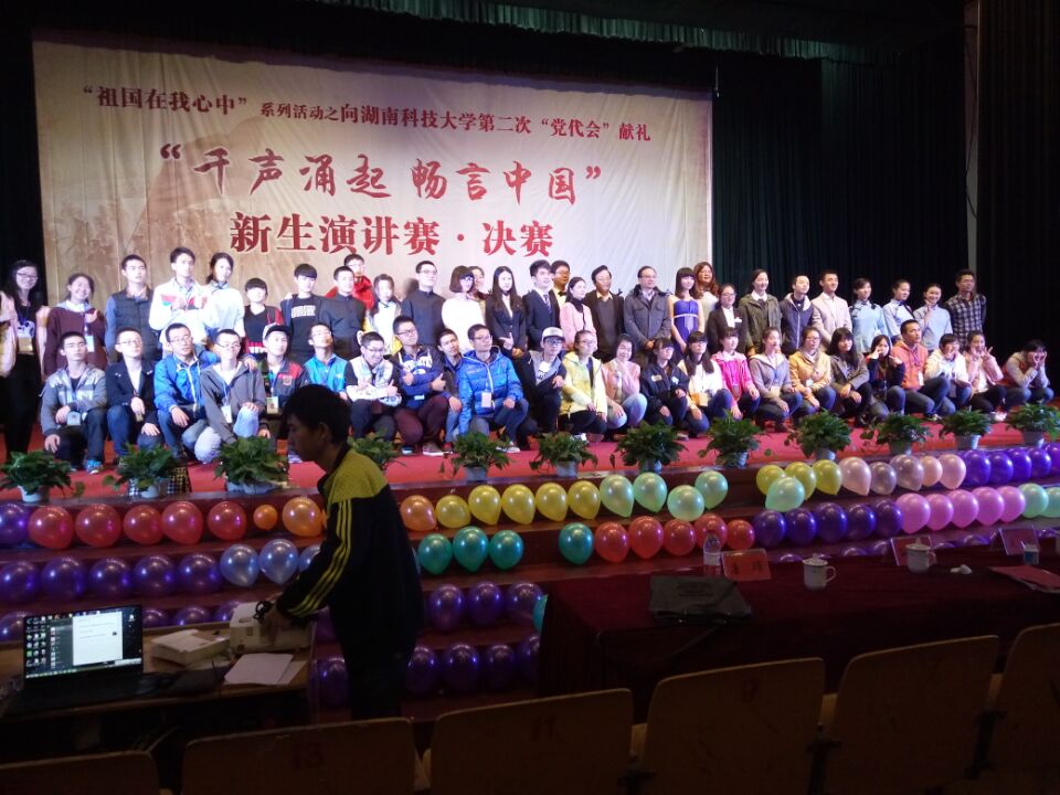 11月7日19时30分,由共青团湖南科技大学委员会主办、校团委文化活动部承办的“祖国在我心中”系列活动之新生演讲赛决赛——向湖南科技大学第二次“党代会”献礼于学校俱乐部隆重举行,来自各个学院的11名选手畅所欲言,表达内心的爱国热情。莅临本次大赛的评委和嘉宾有:湖南科技大学教务处副处长夏立,法学院副院长喻军,人文学院副教授孙际垠,校团委校文化部部长唐璟。