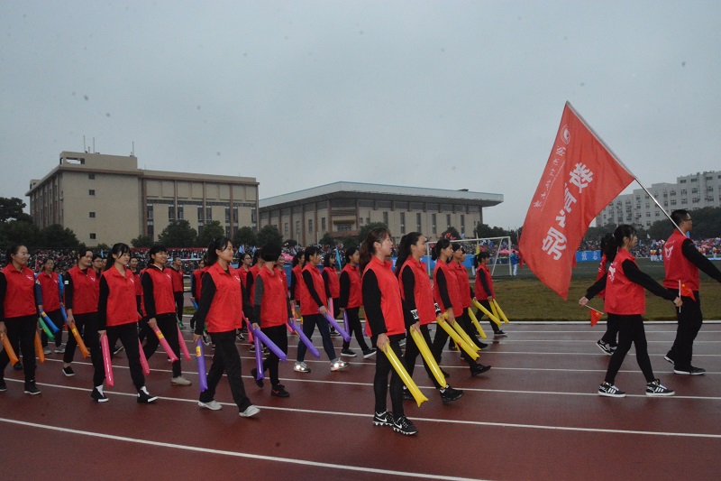 2016年10月20日上午8:00,迎着清秋朦胧的细雨,伴随着激昂奋进的《运动员进行曲》节奏,湖南科技大学第十三届秋季运动会开幕式在北校田径场隆重举行。