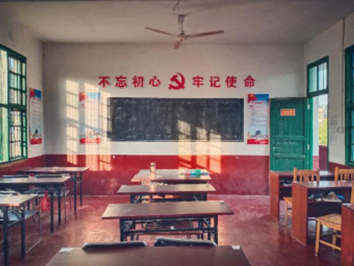 本次支教活动的地点是村里以前修建的一所小学,这里群山环绕,生活条件比较艰苦,简单的三间宿舍、两间教室和一间办公室就构成了教员们的日常活动场所。天气炎热,只有头顶呼呼作响的风扇默默记录下支教的故事。