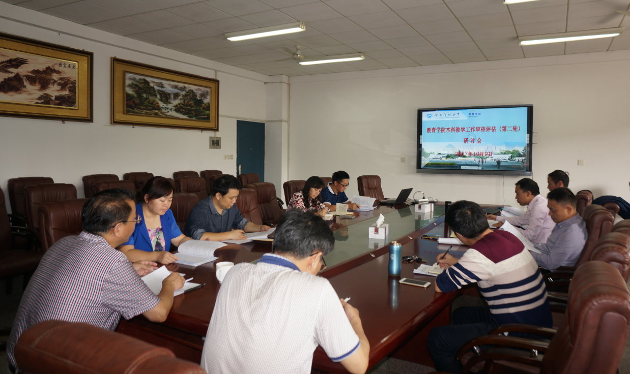 10月9日下午,教育学院开展了审核评估第二轮研讨会。研讨会由院长李海萍主持,院党委书记李炳煌、副院长陈慧青、副院长谭千保、副书记刘亚辉,各系主任、党政办主任和教务办主任参加了此次研讨会。