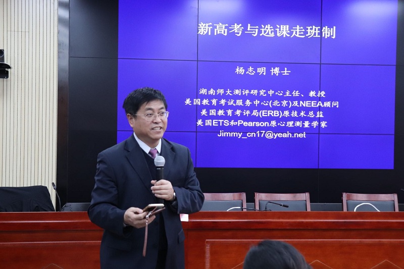 2019年1月3日下午,湖南师范大学测评研究中心主任杨志明教授做客“明湖教育论坛”,为我院师生带来题为“高考新方案与走班制教学”的学术报告。报告会由教育学院党委书记李炳煌主持。