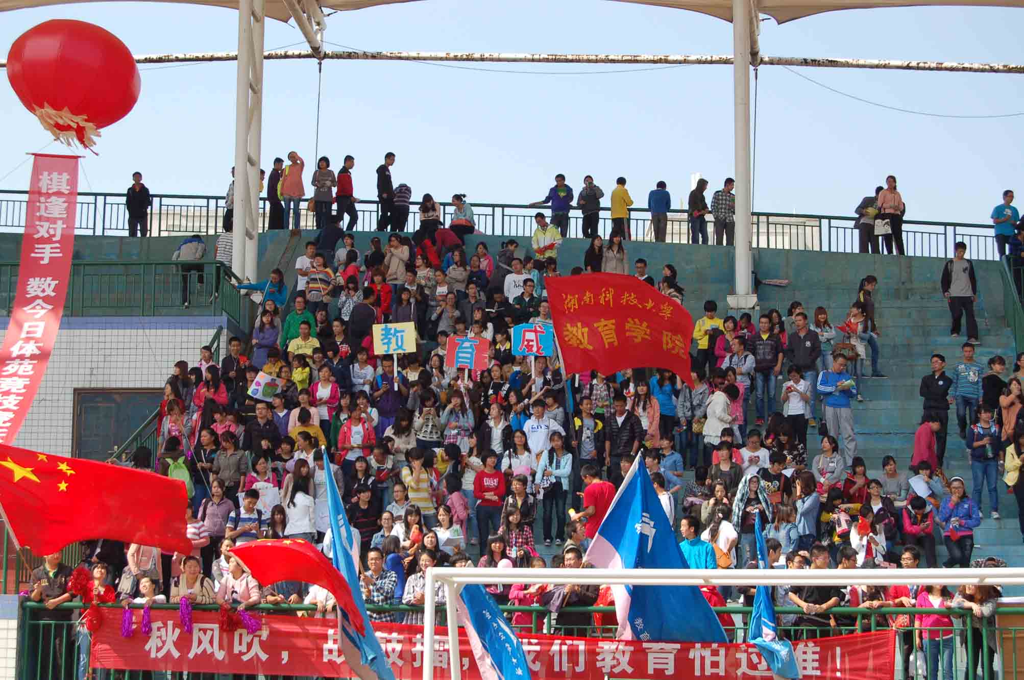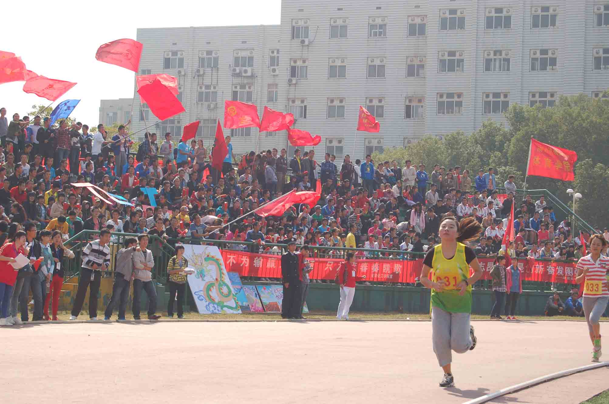 在教育学院的看台上,我们的院旗不断地挥舞着,啦啦队员们整齐助威,专注地看着田径场上的比赛,他们比赛场的选手更紧张、更激动。每当运动员们从我们的观众席前经过时,便掀起一阵欢腾的海浪,呐喊声便一节高过一节,激情澎湃的啦啦队员们让青春的朝气蓬勃在观众席上的助威声中展现地淋漓尽致,鼓声、哨声、呼喊声、尖叫声顿时笼罩在体育场上空。   “我们每个人都很兴奋,看到选手们在赛场上没有力气跑的时候,真想上去拉着他们跑。我旁边的同学特别卖力地在加油,吹哨子时口水都喷到我的脖子上了,希望我们放肆的呐喊声能给我院选手们带去无比的能量!”12级应用心理学一班的陈晓丹同学激动地说道。