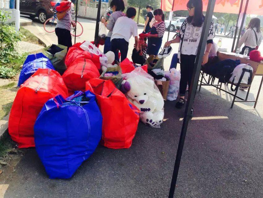 早上7:30,志愿者们来到摆点地点,向来往的同学发宣传单,并讲解宣传此次活动。为了扩大活动的影响力,收集到更多的衣物,志愿者们决定摆点宣传,其余的六名志愿者下寝收集衣物。在收集旧衣物过程中,志愿者们的行为得到了大家赞赏,同时也得到了大家的支持,很多同学将自己的旧衣物给志愿者,虽然力量微薄,只求能够帮到那些需要的人。下寝收集固然辛苦,但志愿者们没有埋怨,把收集到的衣物从宿舍楼一袋又一袋的搬至摆点处后又将衣物进行分类。忙碌了一整个上午的志愿者,没有怨言,只愿能帮助到更多的人。