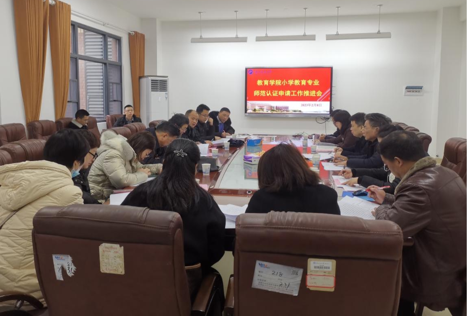 2023年2月8日上午,教育学院在敏行楼A231召开小学教育师范专业认证申请工作推进会。参会人员有校教学评建与教师教学发展中心主任周险峰、人文学院副院长李康澄、图书馆副馆长彭拥军、教育学院全体院领导、系部负责人及小学教育系全体专任教师。会议由学院党委书记李炳煌主持。