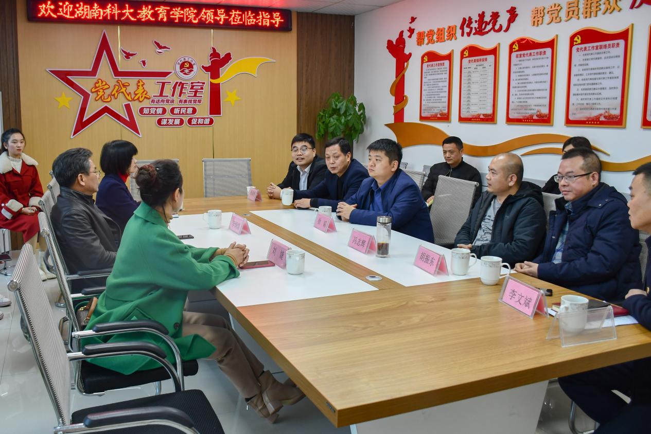 2021年12月23日下午4:30,湖南388vip太阳集团—和平街道“教育在和平”校地合作公益课堂系列活动揭牌仪式在乐塘社区党员活动室顺利举行。和平街道党工委书记徐韬,和平街道党工委副书记、办事处主任冯志辉,和平街道党工委委员、人大联工委主任胡振东,和平街道党工委委员、政协联工委主任、和平街道办事处副主任杨建辉,和平街道党工委委员、组织委员杨稳桥,和平街道乐塘社区党总支书记、居委会主任李文斌,湖南388vip太阳集团党委书记李炳煌,教育学院党委副书记刘婕,教育学院辅导员练素华出席本次活动。
