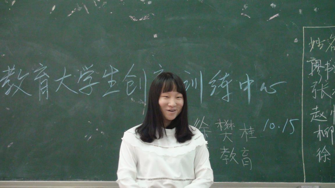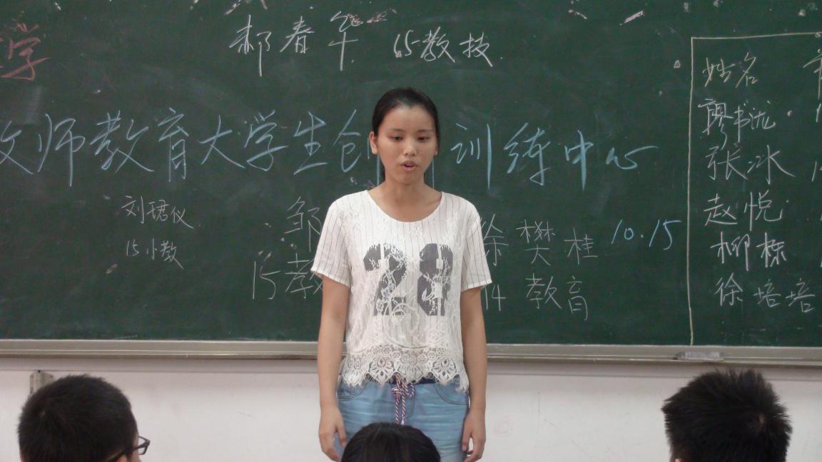 本次招新共有15位报名者,12名参加面试。报名者依次上台演讲,并接受训练中心成员的提问。第一个“吃螃蟹”的是来自14教育技术学专业的廖书泷,他用自己的专业优势让面试官肯定了他的技术;来自15小学教育专业的赵悦是个爱笑的姑娘,她觉得微笑能带给人不一样的能量;而14教育学的徐樊桂则用自己的一段经历打动了面试官。其余的面试者都自愿上台发表演说,挥洒他们的青春和热血。