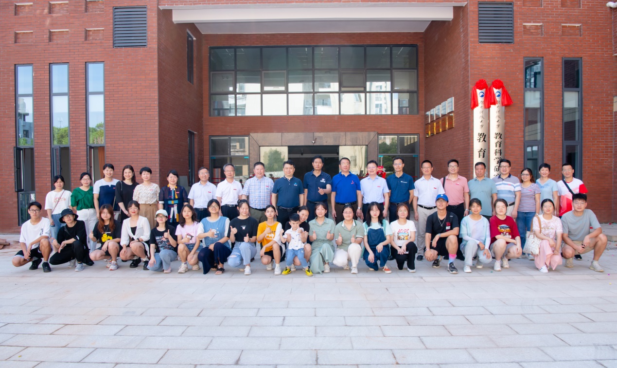 ▲参加仪式的领导及师生合影留念