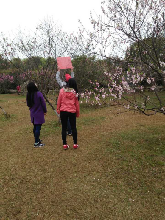 此次志愿活动分为四小组,一组负责明湖,一组负责桃花园,剩下两组负责大小樱花园。活动的主体内容是挂一些提示吊牌,清理旧损吊牌,拾掇地面垃圾。活动开始之前在彭柳琼、罗佳明、郑巧玲、郭媛媛等负责人领头下已经做了许多准备,分配心灵手巧的志愿者们做好了足量吊牌,为了做出好看又实用的吊牌志愿者们花了不少心血。志愿者们早8点就在北校图书馆门前集合,分组、分发吊牌和垃圾袋之后,小中队长带领组员们向目的地出发。