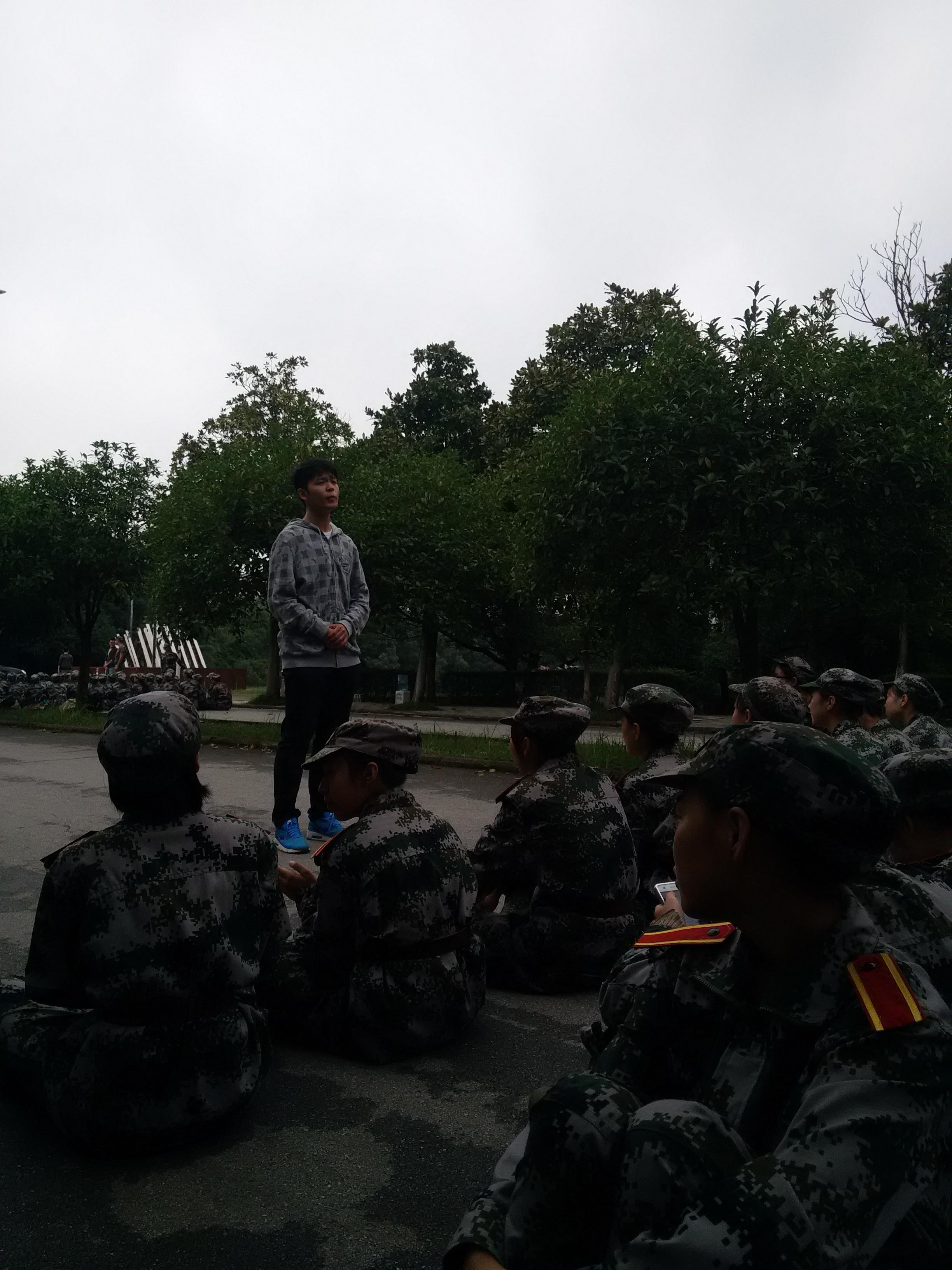 几天的军训已然让大家褪去初时的羞涩与忸怩,彼此已十分熟络,这位引吭高歌咏军魂,军歌红歌信手拈来,那边舌灿莲花讲笑话,手舞足蹈笑点十足,你方唱罢我登场,连几个平时比较腼腆的同学也不禁受到感染,活泼起来,台下观众的眼睛里仿佛盛着星光,现场掌声喝彩声此起彼伏,俨然大型晚会现场啊!惊喜的是,课间休息时,六营三连132排的同学们合着广播里的音乐跳起了广播体操,昂扬的精神面貌,整齐划一的动作,博得阵阵赞许声。