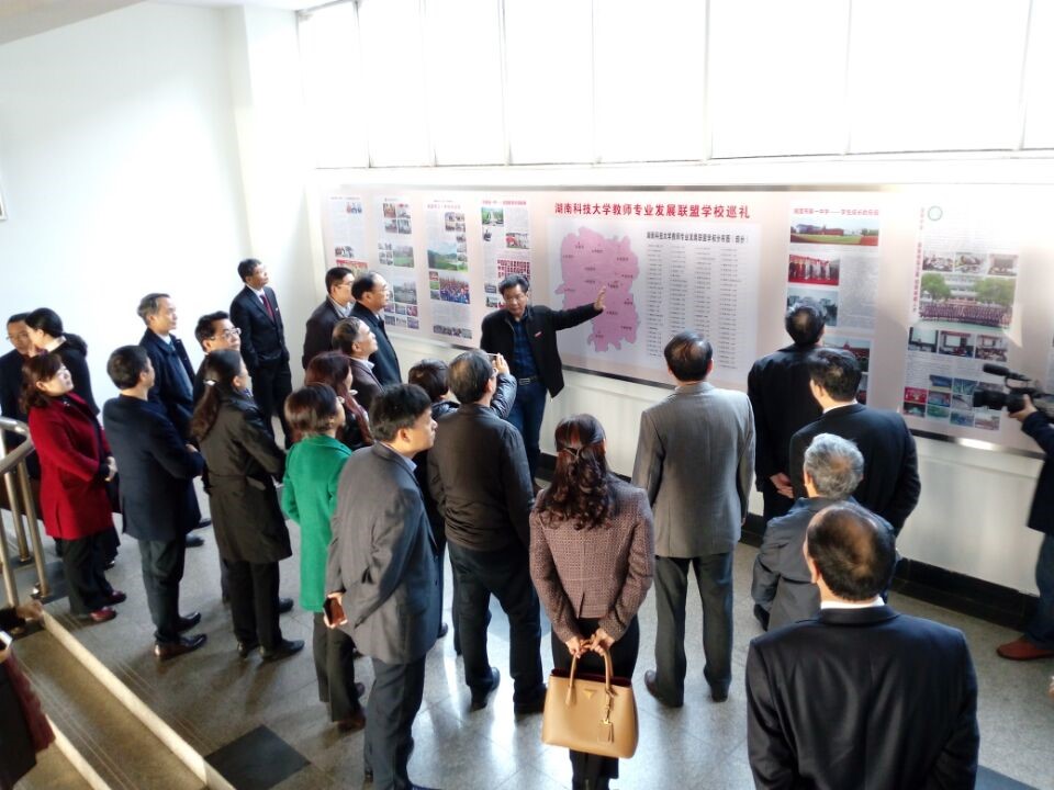 11月27日上午11点,教育部本科教学审核评估专家组一行十三人在校党委书记刘德顺教授、校长李伯超教授的陪同下集体走访了教育学院。教育学院院长李海萍教授向专家组简要介绍了学院的办学历史、专业设置、学位点建设、学科发展及学院教学工作特色等基本情况;教育学院党委书记李炳煌教授向专家组汇报了“湖南科技大学教师专业发展联盟学校”的发展概况。最后,专家组着重考察了学院的“现代远程互动教学平台”,该平台提供了课堂远程录制、实时共享、集体观摩、在线研讨等多种教师教育技能的实训功能,学院教育信息技术学系主任杨世伟为专家组进行了现场演示和介绍。