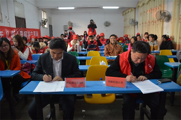 4月10日,天刚破晓,留守儿童心灵呵护志愿团在我院党委副书记王伟清教授的带领下,在推广仪式后一天前往娄底市双峰县锁石中学,开展为期一天的志愿活动,帮助该校七年级210名左右学生提高心理健康水平。湖南人文科技学院的志愿团成员及教师同行观摩、学习。