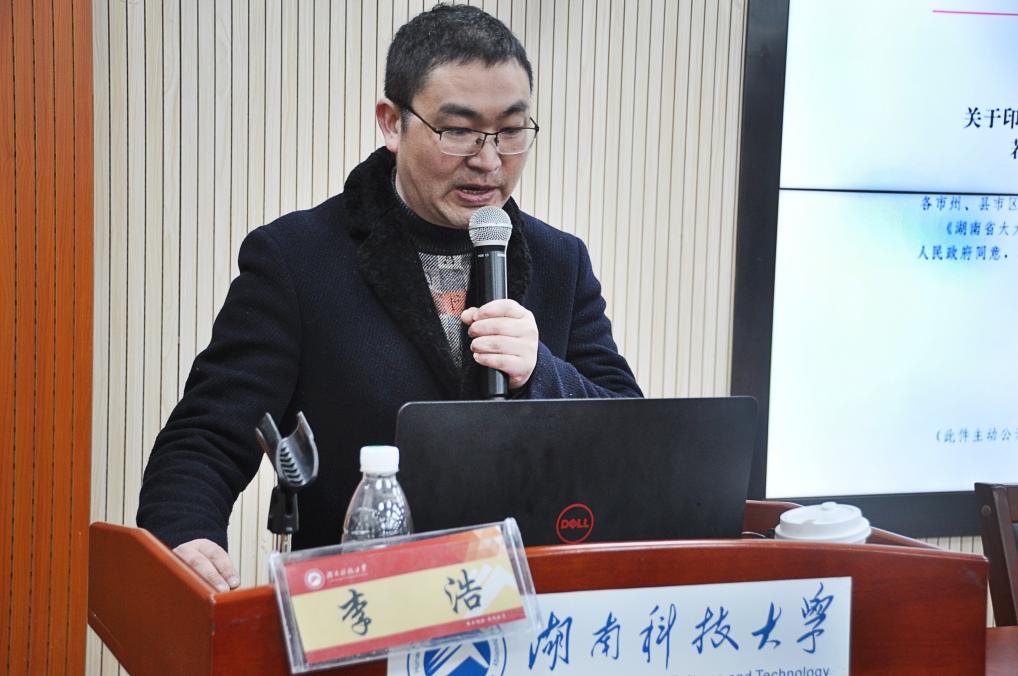 为培养学生创新思维,激发学生创业热忱,3月4日,由创新创业学院主办、教育学院承办的“创新创业大讲堂·第九十五讲”在第八教学楼310举行。本期大讲堂由湘潭市人社局就业服务中心创业服务科科长李浩主讲,教育学院学工办主任罗江林主持,创新创业学院教师及各学院学生代表参加。