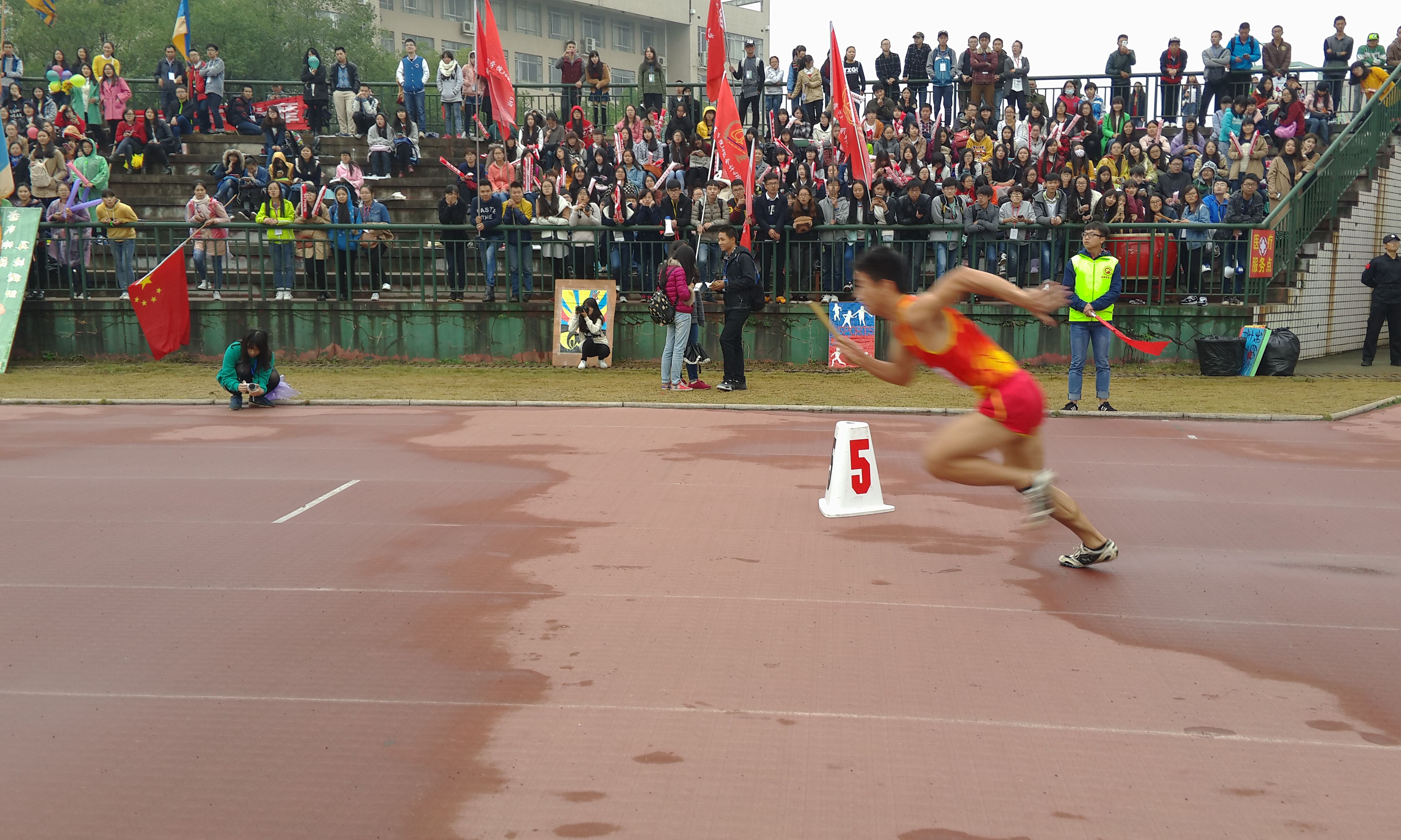 田径赛场上的运动员们,一个个如矫兔般飞离起点,像利箭般冲向终点。运动场上他们的飒爽英姿,跑道上他们的拼搏身影,无不引得在场观众激动不已。三级跳远上的同学,带着教院的期望,怀揣着超越自己的梦想,快速助跑,即时踏板,迈开矫健步伐,腾空落地,以一条美丽的弧线稳落在沙坑上。在我们的采访中,来自教育学院小学教育专业的三级跳远选手林婉琼说“三级跳远是一项很有技术性的比赛,我的成绩不是很理想,但我能超越自己,我觉得很高兴,关键是重在参与”。该选手向我们传递了友谊第一,比赛第二的原则,尽管没取到好成绩,但观众却不会因此而沮丧。“教院不红,天理难容”“大教育,加油”这此起彼伏的加油声无疑给成绩不理想的选手一个安慰,给将要比赛的选手一个安心丸。