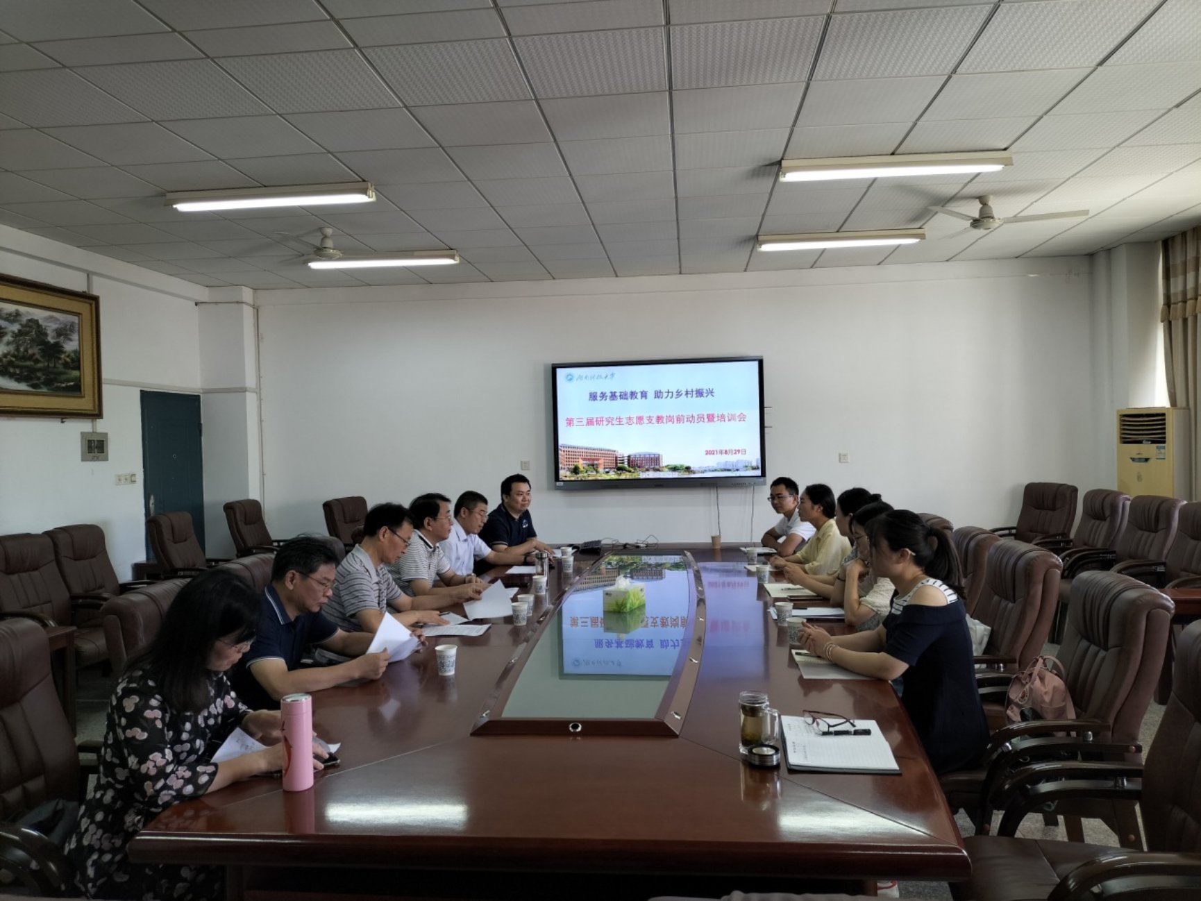 为做好本届研究生志愿支教团的组织工作,8月29日,学校组织召开了第三届研究生支教团岗前动员暨培训会,研究生院、校教育硕士“培指委”、教育学院等单位负责人参会,全体支教研究生、相关培训导师参加。