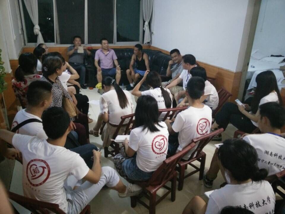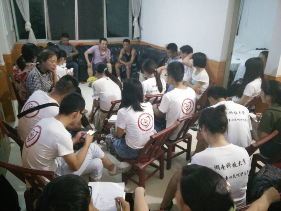 2015年7月17日晚上22:00,湘潭火车站,一支整齐的队伍带着行李在焦急的等待中蓄势待发。次日早上8:00到达张家界。紧接着又从张家界出发去永顺,到达永顺后又从永顺站出发,经历了多次转站后终于于12:40到达首车镇的双湖村。这支队伍就是由教育学院的王伟清副书记带领的青年志愿者们所组成的“三下乡”志愿队。经历了短暂的休息和熟悉环境后,王伟清副书记开始进行后几天的工作布置,并与志愿者们进行交流。