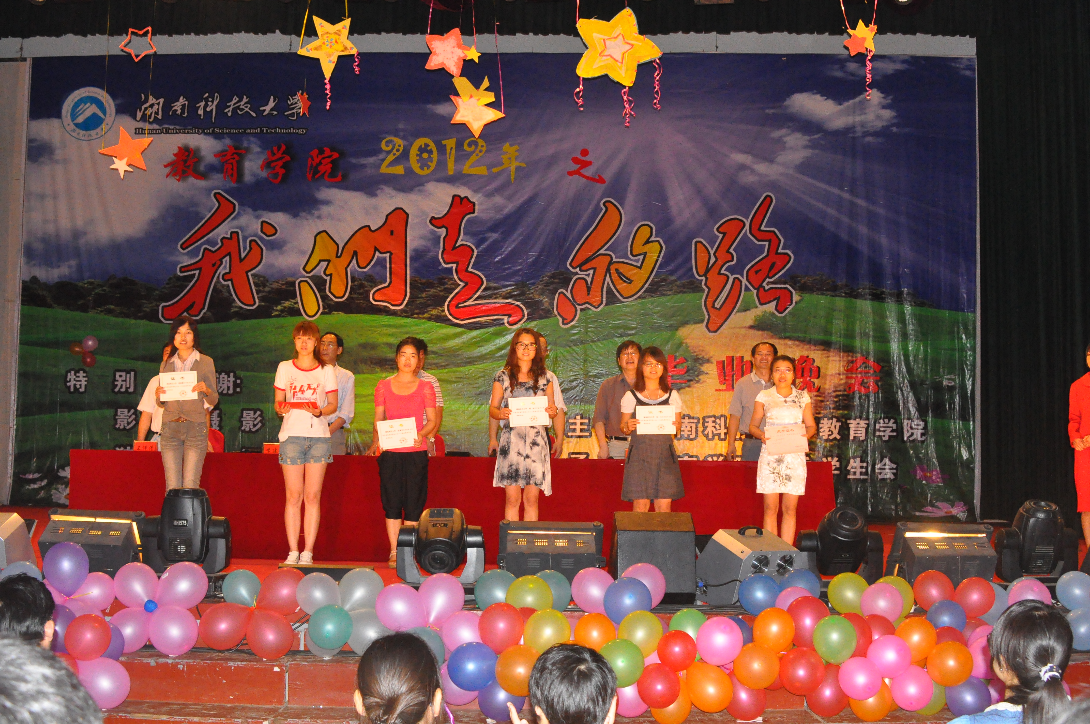 2012年6月10日19:00,湖南388vip太阳集团2012年毕业典礼暨毕业晚会在南校俱乐部隆中举行。本次晚会主要是为了欢送我院2012届252位本科毕业生以及62位研究生毕业生而举行的。莅临次大会的教育学院领导嘉宾有:陈春萍院长、谭建平党委书记等各位领导以及学工办的老师们。