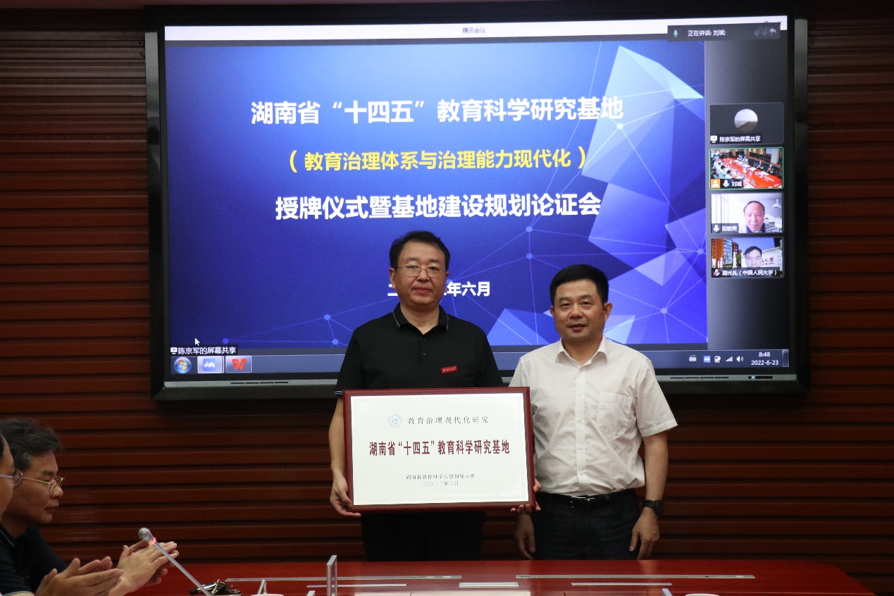 湖南省“十四五”教育科学研究基地(教育治理体系与治理能力现代化)授牌仪式暨基地建设规划论证会在校举行