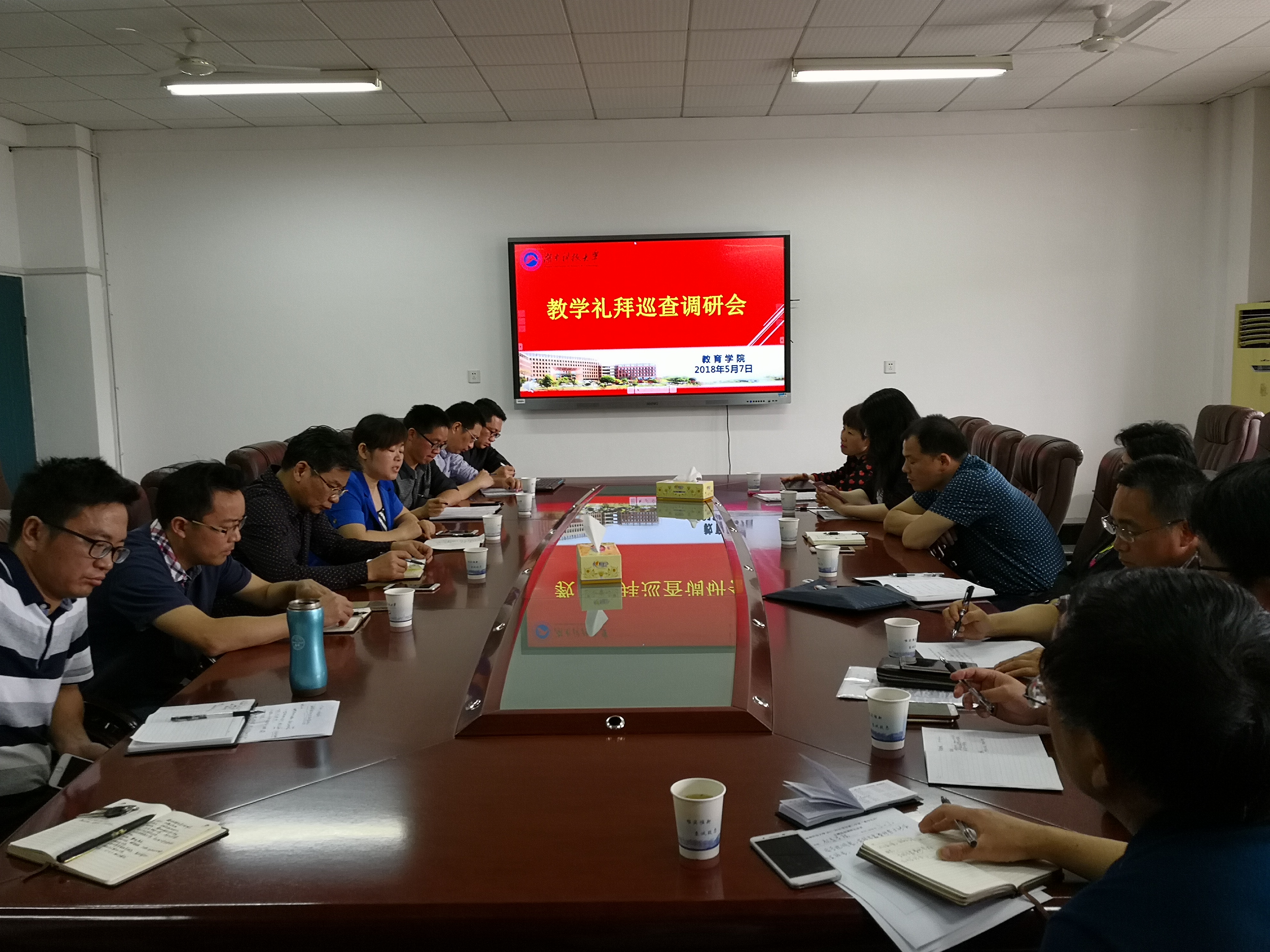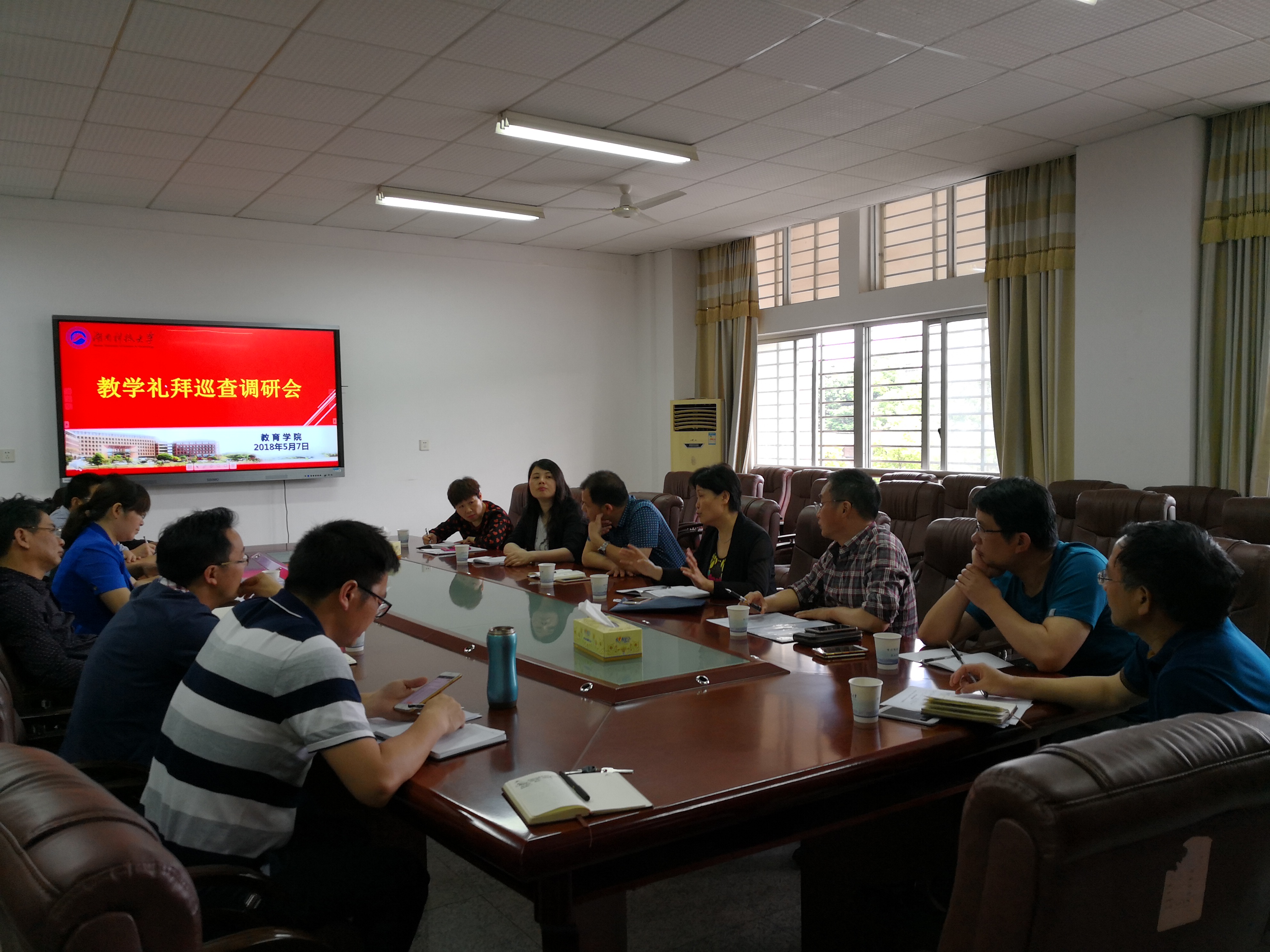 2018年5月7日下午,李琳副校长一行来我院调研,教育学院领导班子、党政办、教务办、研究生办、学工办、实验室部门负责人在第八教学楼208室与各职能部门领导就教学管理、学风建设、师资队伍、后勤服务等方面内容进行了面对面交流。