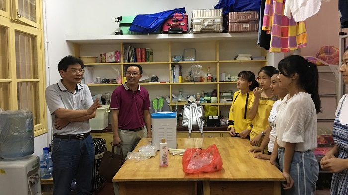 为了第一时间了解新生来校后的情况,9月10日上午9点整,学院院长李海萍、院党委书记李炳煌、院党委副书记刘辉亚、院党委委员应用心理学系主任陈京军、学工办主任李涛下寝看望2017级新生,进一步了解新生住宿、报到等情况,问候他们是否一切适应。