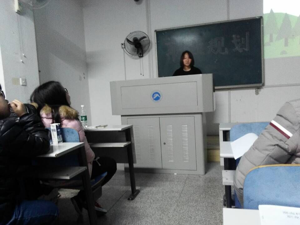 大会的第三个环节是参加过上一届职业规划大赛的徐樊桂向14级、15级各班代表介绍比赛内容,传授经验。徐樊桂展示了自己参赛时的ppt和校级比赛的获奖作品,并在展示过程中告知大家一些注意事项。如自我介绍应该有特点才能让人印象深刻,自我计划要讲述别人不知道的而不是大家都有的计划,结尾有能让人回味……介绍完之后徐樊桂表示梦想不是用来比赛的,不要为了比赛而写成高逼格的梦想,大家不要太在乎其他人的看法。