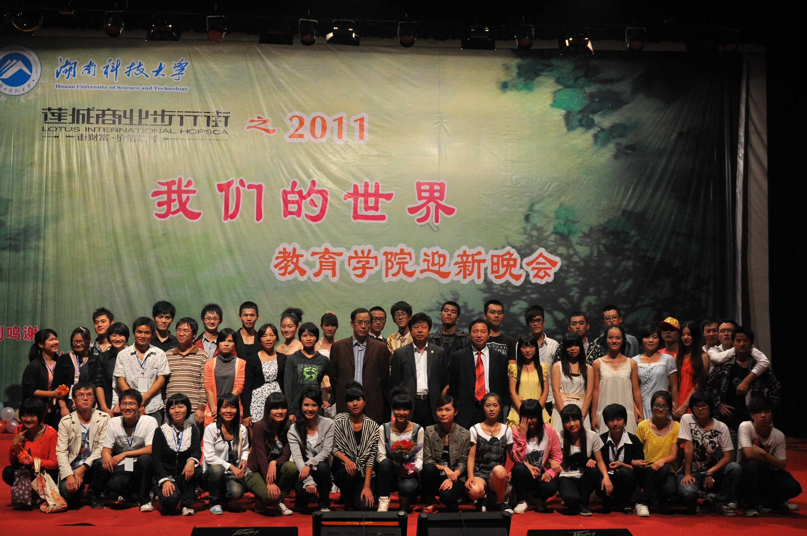 2011年9月25日晚上19点,一场视听盛宴在湖南科技大学南校俱乐部隆重上映,这不仅是新生的盛会,更是教育学院的盛会,作为湖南科技大学的第一场迎新晚会,它带给我们的不仅是视觉和听觉的冲击,更是心灵美的享受。此次大会得到了教育学院各级领导的大力支持和重视。教育学院院长陈春萍、党委书记谭建平、副院长陈坤华、李建生、周险峰、院党委副书记王伟清等领导出席了大会。大会由党委书记谭建平主持,院长陈春萍代表学院做了意味深长的迎新发言。