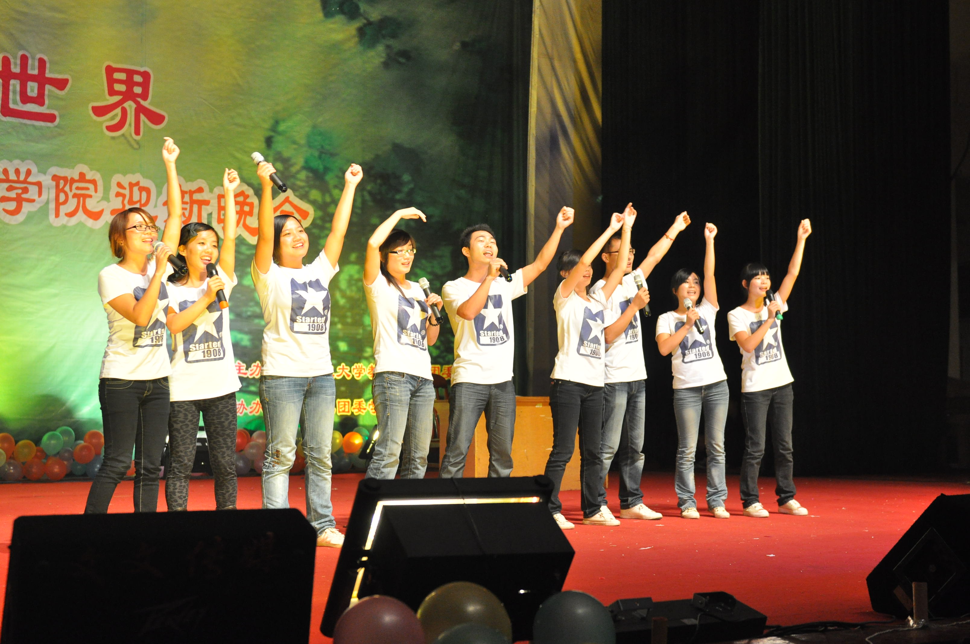 不论是11级新生,还是学长学姐,一张张笑脸彰显着他们飞扬的青春。伴随着现场烟花的绽放,开场舞以其劲爆的旋律,劲爆的舞姿,赢得观众的一阵阵欢呼;新生联唱《多彩每一天》中的口技带动了现场气氛,一首《樱花草》沁人心脾,一场豫剧独占鳌头,成为演出中一道亮点,新生们的表演活力四射,在这个舞台上散发着青春的魅力!