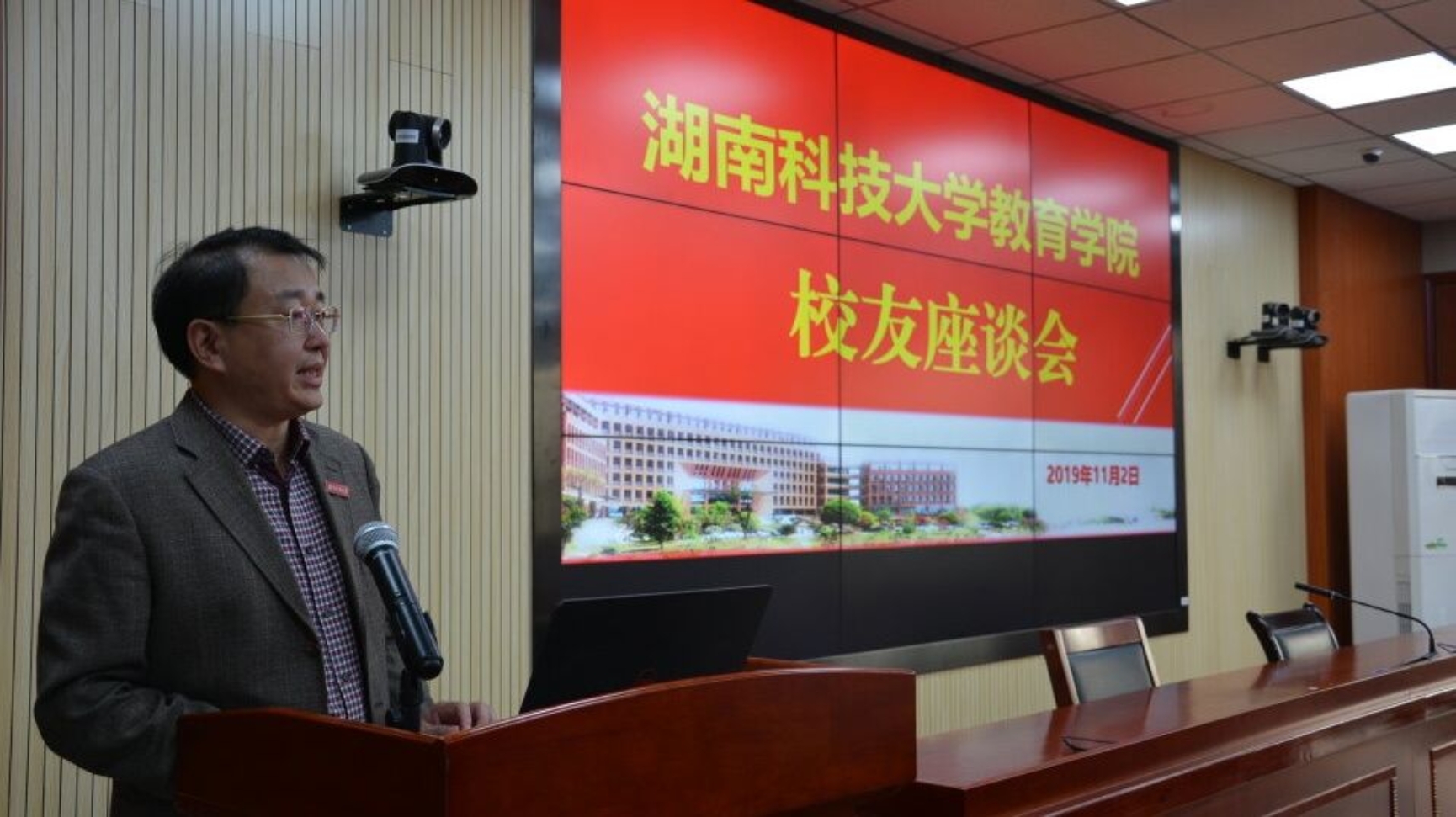 座谈会开始,院长李海萍代表学院向与会的各位校友表示热烈欢迎和诚挚感谢,并简要介绍了学院的办学历史及发展情况。他表示,今年是学校办学七十周年,也是教育学院成立二十周年,值此之际,学院举行校友座谈会,是重续同事之情和同窗之谊、分享人生体验的一次难得机会,希望校友们畅所欲言。他表达了对广大校友的衷心祝愿,同时也希望校友们能够一如既往地关心和支持学院的发展。