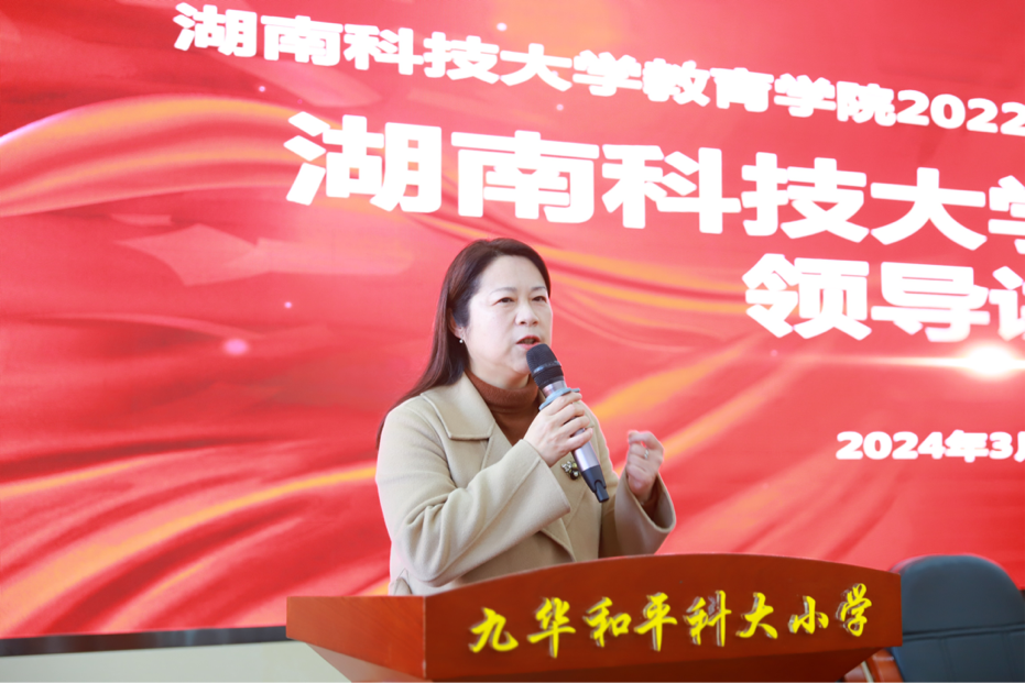 最后,九华和平科大小学校长李莉、教育学院党委书记李炳煌分别做了发言。李莉校长对实习生的到来表示热烈欢迎,她建议同学们勤观察、多思考、多实践,希望可以通过这段实习生活对教育有新的感悟与收获。李炳煌代表学院对科大小学的大力支持表示感谢,希望同学们珍惜实习机会,弘扬教育家精神,将理论与实践相结合,练就教育教学及班级管理等方面的真本领。