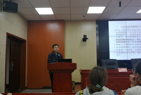赵长林结合自身多年的研究经历,从理想与现实、理论与实践的独特视角,就如何培养中国学生发展核心素养展开了一场别开生面的讲座。赵长林表示,“核心素养”这一理念自2014年提出,就引起了社会的诸多关注。许多专家学者在这一领域都有了深入的研究,但如何将研究成果转化为教师教学的实践指导,依然是一个难以落实的问题,致使国内教育改革仍然举步维艰。