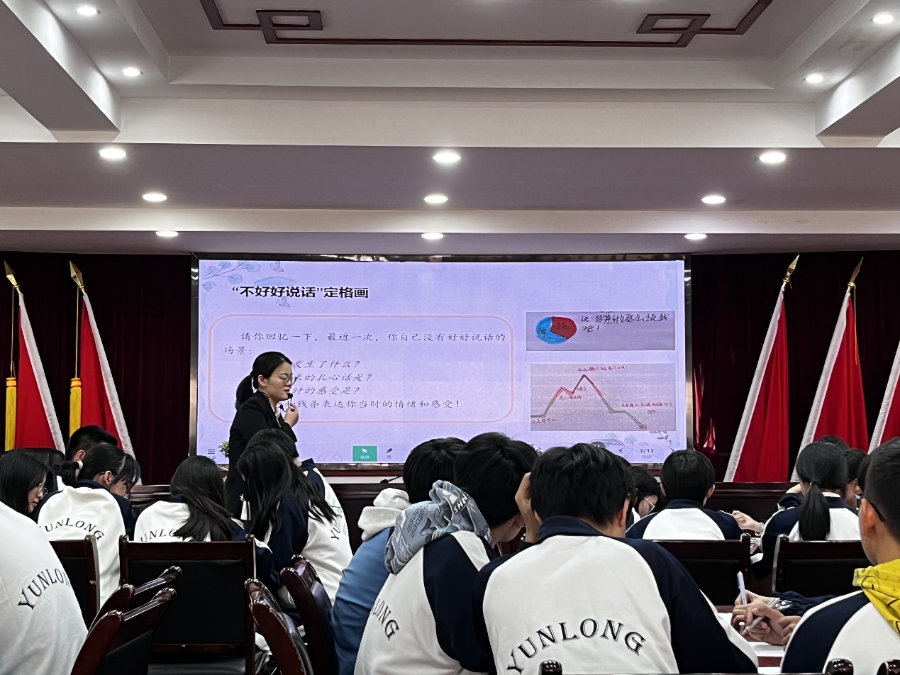 上午心理中心蔡子辉主任为同学们做了《心理辅导课的专业化技术》的讲座,带领参观了云龙中学的心理辅导中心。下午同学们观摩了刘雅文老师讲授的心理健康课程《好好说话》,并参加评课。