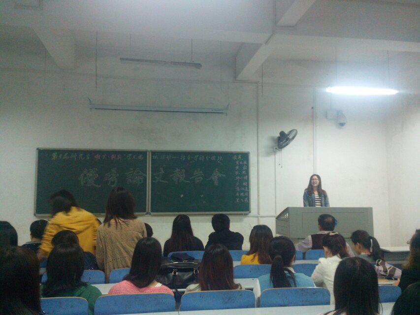 学术报告之后,获得优秀论文的8个代表依次上台跟同学们分享了优秀论文的“诞生之路”,他们的报告不仅展现了研究生与时俱进的创新意识,而且体现了文科学子强烈的社会责任感和人文关怀意识。