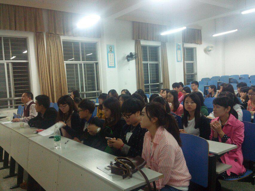 2014年5月19日晚上,第十届研究生“唯实·创新”学术论坛社会学科分论坛优秀论文报告会在八教2-6教室展开,教育学院副院长周险峰教授等出席,教育学院、马克思主义学院、体育学院以及艺术学院四个学院的部分研究生参加,报告会教育学院研究生会主席张苗主持。
