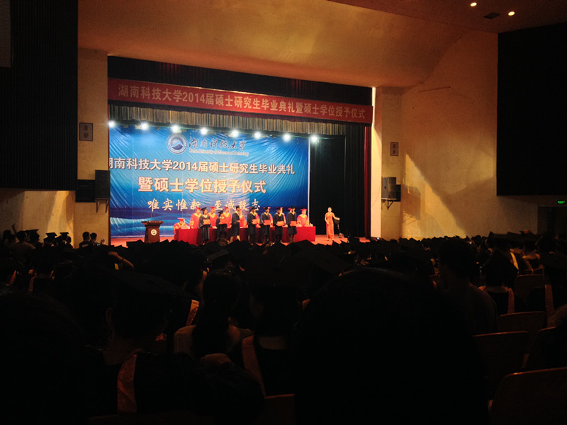 2014年6月20日上午9点30,湖南科技大学在南俱隆重举办了2014届硕士研究生毕业典礼暨硕士学位授予仪式。教育学院领导与毕业生共同见证这一神圣的时刻。